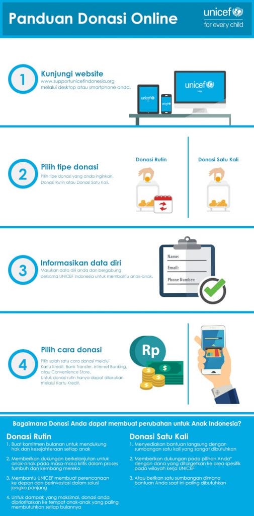 Jangan takut kerepotan untuk memberikan donasi. Saat ini, donasi UNICEF Indonesia dapat juga dilakukan secara online.